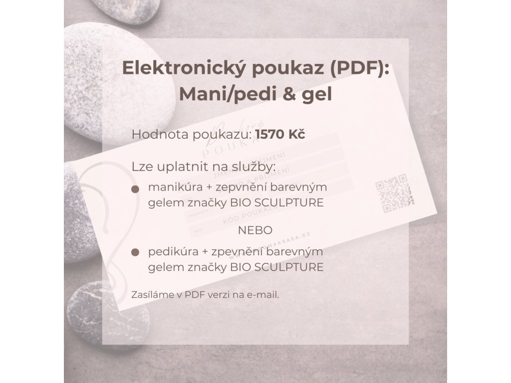 Elektronický dárkový poukaz je ekvivalentem fyzického dárkového poukazu a lze ho uplatnit na manikúru nebo pedikúru v našem studiu VĚDOMÁ KRÁSA.